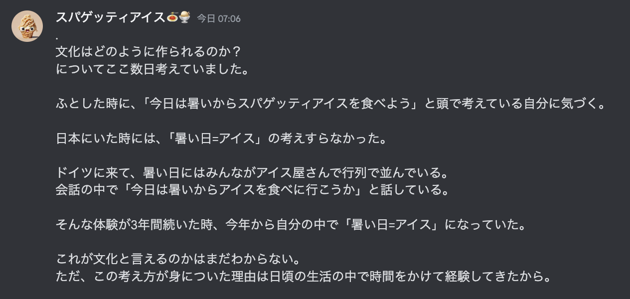 ルッコローの森でスパゲッティアイスがこんなことを書いていたので、文化について書いてみよう🏋️