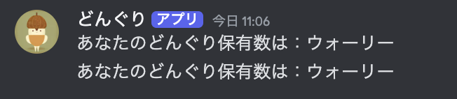 何を聞いても「あなたのどんぐり保有数は:ウォーリー」と答える謎現象を乗り越えて、正常に動作するようになりました